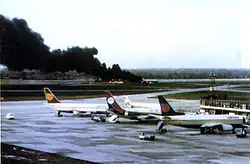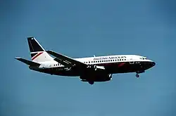 Le Boeing 737-200 de British Airtours (en) impliqué dans l'accident (G-BGJL), anciennement nommé Goldfinch, ici photographié plus de 3 ans avant l'accident, et avant qu'il ne reçoive une nouvelle livrée. | |||