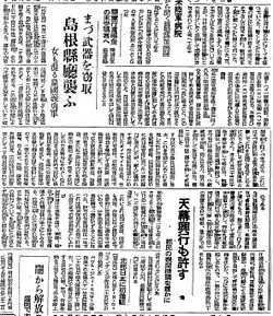 - Après cela, la station de radio de Shimane serait occupée pour diffuser la nouvelle du soulèvement.