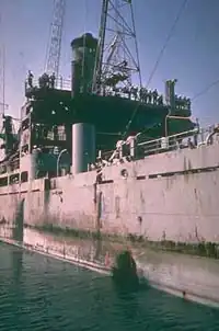- ↑ En anglais : an electromagnetic audio-surveillance ship of the U.S. Navy