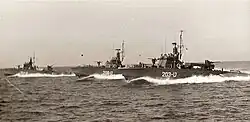 | 1 victory ship équipé en navire d'écoute | 2 Mirage III, 2 Dassault Mystère, 3 vedettes lance-torpilles. |