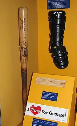 Le goudron de pin est une substance collante noire que l'on étale sur le manche des bâtons de baseball afin d'augmenter la prise en main et l'adhérence de la batte. Son utilisation est réglementée par les autorités du baseball et c'est sur un détail du règlement que les Yankees de New York ont remporté le match qui les opposait aux Royals de Kansas City.
