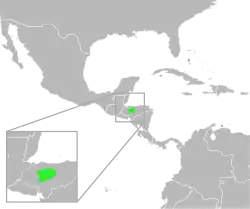 Cette espèce est endémique du Honduras[1]. Elle se rencontre dans les départements de Comayagua, de Francisco Morazán et de La Paz entre 1 584 et 2 100 m d'altitude dans les montañas de Comayagua.