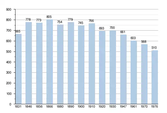 Les chiffres des années 1831 à 1970 tiennent compte des chiffres des anciennes communes fusionnées.