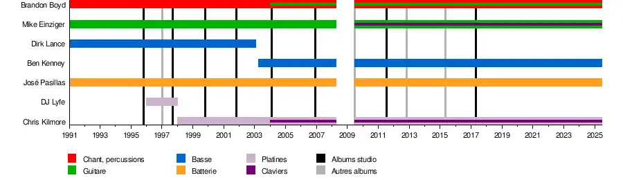 - Brandon Boyd – chant, percussions, guitare (depuis 1991)