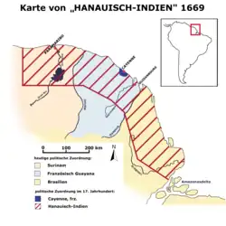 En juillet 1669, le conseiller Johann Joachim Becher se rend à Amsterdam et signe, au nom du comte Frédéric Casimir de Hanau, un accord avec la Compagnie hollandaise des Indes occidentales pour prendre possession d'un territoire de 3 000 miles² néerlandais (près de 100 000 km2). Le but est de fonder une colonie allemande en Amérique de Sud et, dans le cadre d'une économie mercantiliste de développer la balance commerciale des comtés de Hanau-Lichtenberg et de Hanau-Münzenberg, tous deux dirigé par le comte Frédéric Casimir de Hanau. Ce royaume des Indes hanauviennes devait aussi apporter la civilisation au peuplades autochtones. Le contrat prévoyait des droits étendus pour la Compagnie hollandaise des Indes occidentales, par exemple, un monopole sur le transport commercial de la colonie.