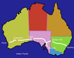 La ligne continue ensuite vers le sud jusqu'à la ville côtière de Port Pirie, avant de rejoindre Crystal Brook à l'intérieur des terres, puis d'aller vers Adélaïde, la capitale de l’Australie-Méridionale. Le train remonte ensuite jusqu'à Crystal Brook d'où la ligne se dirige alors vers l’est en passant par Broken Hill. Le tronçon de Port Pirie à Broken Hill a été reconstruit en voie normale en 1970 (avant les rails étaient en voie étroite). Celui reliant Crystal Brook à Adélaïde a été construit en 1982. Avant cela, l'Indian Pacific n'allait pas jusqu'à Adélaïde et les passagers devaient changer de train à Port Pirie.