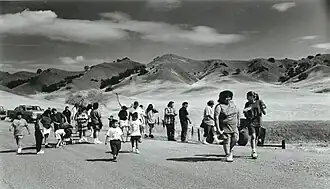 Dans le cadre de la politique d'assimilation, les États-Unis adoptent la loi de réinstallation des Indiens en 1956. Cette loi fédérale encourage les Amérindiens, qui vivent sur ou à proximité d'une réserve, à déménager vers des zones urbaines pour de meilleures possibilités d’embauche[29].