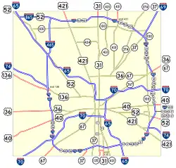 Indianapolis est aussi parcourue par six U.S. Route, les US 31, US 36, US 40, US 52, US 136 et US 421.