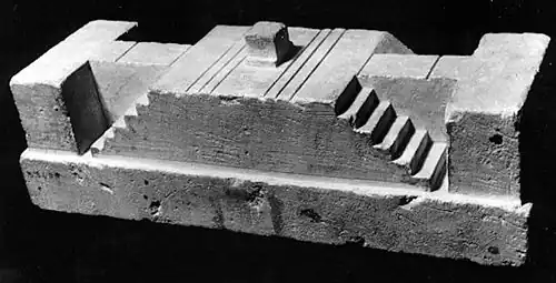 Un instrument sculpté dans le calcaire (Musée égyptien du Caire n° 33401) propose trois pseudo horloges solaires reprenant les principes exposés ci-dessus. L'« heure » était lisible alternativement sur la plateforme supérieure, sur une face inclinée et sur des gradins. Cet instrument, aujourd'hui, semble n'être qu'un modèle pour l'architecture[4].