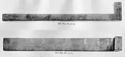 Un des plus anciens indicateurs solaires connus, très semblable à celui décrit ci-dessus, date du règne de Thoutmôsis III. Comportant non pas quatre marques mais cinq, sa capacité de mesure s'étendait à dix « heures » au lieu de huit. Il existe un second objet de ce type, plus récent de quelque cinq cents ans : « l'horloge » de Saïs (Musée de Berlin, n° 19743), possédant six marques, et dont la particularité est d'offrir un nom à chaque marque ou « heure » du matin, nom placé sous la protection d'une divinité :