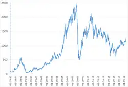 L'indice 100 correspond à leur capitalisation totale au . Il a atteint son minimum 37,74 le , et son maximum 2360,15 le .