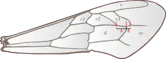 L’indice cubital est le rapport A/B de la mesure de deux longueurs de nervure situées au bord d’une cellule appelée "cellule cubitale" (C3 sur la photo ci-contre). Comme il s’agit d’un rapport de deux longueurs, le résultat est indépendant de l’environnement de l’abeille, grosseur en particulier.
