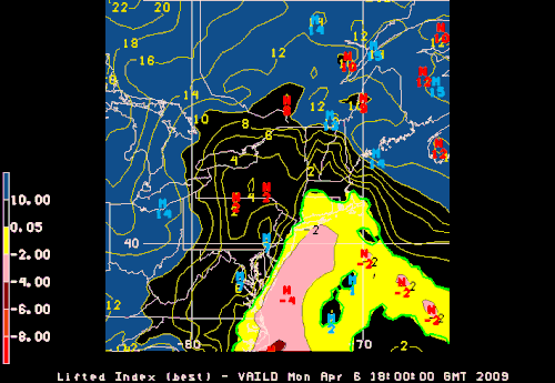 - ↑ (en) « GOES Soundings: U.S. Coverage of Lifted Index (°C) », National Oceanic and Atmospheric Administration (consulté le ).