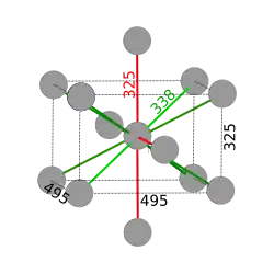 | Réseau de Bravais | tétragonal a = 3,25 Å ; c = 4,95 Å Z = 2 V = 52,28 Å3 densité calculée = 7,29 |