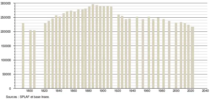 - ↑ Population selon le sexe et l'âge quinquennal de 1968 à 2013 - Recensements harmonisés - Séries départementales et communales