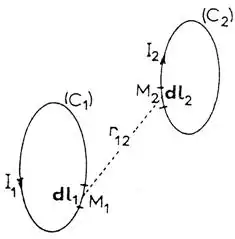 On considère les courbes et parcourues par des courants et . Le courant produit dans tout l'espace un champ magnétique . Le flux généré par le champ magnétique à travers est noté .