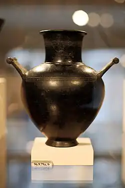- ↑ L'œnochoé à bec long exporté en Gaule Ve siècle av. J.-C. a certainement influencé l'art celtique