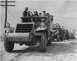 Les formations alliées blindées comprenaient un élément d'infanterie mécanisée. Par exemple, les divisions blindées américaines avaient pour chaque bataillon de chars d'assaut, un bataillon d'infanterie mécanisée et un bataillon d'artillerie automotrice. L'infanterie mécanisée était entièrement équipée d'autochenilles M2 et M3.