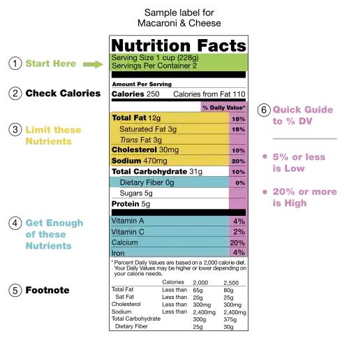 Aux États-Unis, l'étiquette nutritionnelle est obligatoire, elle apparaît sous la forme d'un tableau intitulé Nutrition Facts[29].