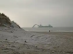 - Vague dépassant les digues, ce qui peut, par exemple, menacer la stabilité d'une digue