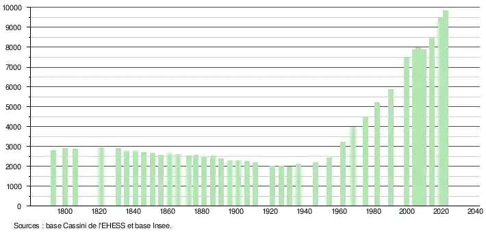 - ↑ Fiches Insee - Populations de référence de la commune pour les années 2006, 2007, 2008, 2009, 2010, 2011, 2012, 2013, 2014, 2015, 2016, 2017, 2018, 2019, 2020, 2021 et 2022.