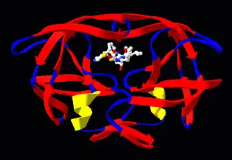 - La pénicilline est un inhibiteur suicide de la transpeptidase intervenant dans la synthèse du peptidoglycane, composant de la paroi des bactéries. Son cycle bêta-lactame étant très labile réagit avec le site actif de l'enzyme. Elle se fixe alors de façon thermodynamiquement très stable à l'enzyme au niveau de ce dernier.