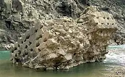 Figures sculptées sur la falaise : il s'agit du pétroglyphe d'Ardachir Ier.