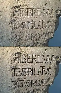 Cette inscription confirme le titre de préfet romain de Pilate, plutôt que celui de procurateur que lui attribue Tacite dans le célèbre passage des Annales où il décrit la persécution des Chrétiens sous Néron à la suite du grand incendie de Rome