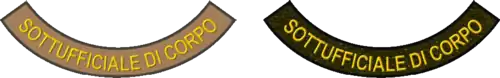 - ↑ Les insignes de souvenir sont portés sur la veste de l'uniforme ordinaire et de service (et dérivés), au nombre maximum de deux, et sont appliqués de la manière suivante : au-dessus de la poche droite, les insignes de parachutiste en guerre, de souvenir de la campagne de Russie, du 1er régiment motorisé et du C.I.L., des contingents militaires en opérations de paix (voir Insignes commémoratifs des opérations militaires italiennes), au choix du titulaire ; au centre de la poche de poitrine gauche, les insignes de commandant d'unités blindées en guerre ou en paix et de personnel d'unités d'artillerie antiaérienne.