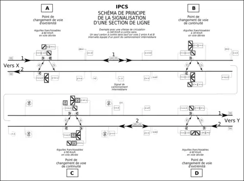 Schéma de principe de la signalisation d'une section de ligne équipées d'IPCS