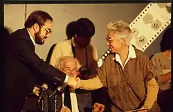 Suzanne Laclavère-Duval remet les prix à la clôture du Festival du film scientifique, au Congrès de l'AICS/IFSA de Mexico 1984