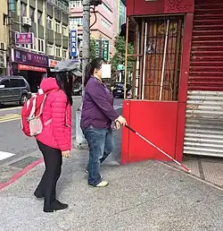 Les instructeurs et instructrices de locomotion accompagnent les personnes en situation de déficience visuelle s'orienter et se déplacer, notamment en milieu urbain[1].
