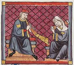Enluminure issue de The Berkeley Manuscript (vers 1360). Bibliothèque de musique de l'Université de Californie, MS. 744.