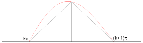 - « On sait que a une valeur finie et égale à π/2. Cette intégrale peut être partagée en une infinité d'autres, prises la première depuis γ = 0 jusqu'à γ = π, la seconde depuis γ = π jusqu'à γ = 2π, et ainsi de suite. Ces nouvelles intégrales sont alternativement positives et négatives, chacune d'elles a une valeur numérique inférieure à celle de la précédente […]. » ;