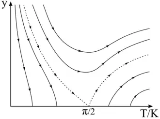 Cette transition peut être décrite par un diagramme de flot de renormalisation[4], représenté sur la figure à droite.