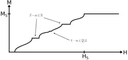 Les considérations précédentes nous permettent de déduire que si l'on place le système à une rigidité de spin telles que le modèle XY associé soit dans sa phase gapée (phase désordonnée avec un ordre à courte distance), mais que est irrationnel, alors les vortex vont être prohibés et le système va demeurer dans sa phase non gapée (phase ordonnée, quasi-ordre à longue distance). Si on augmente maintenant progressivement le champ magnétique, l'aimantation va varier à priori linéairement avec ce dernier, puisque l'on est dans une phase non gapée. Mais si lors de ce processus, l'aimantation devient telle que est entier (ou rationnel), les vortex peuvent alors apparaître et détruire la phase ordonnée pour amener le système dans sa phase gapée. On voit alors que cette fois, si l'on continue à augmenter le champ magnétique, il ne va y avoir aucune variation de l'aimantation (dans un premier temps du moins). En effet, le système étant gapé, il va falloir dépasser un certain champ seuil avant de pouvoir exciter les états de plus haute énergie. On a donc à faire à ce que l'on appelle un plateau d'aimantation[7].