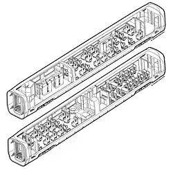 Les arrières des motrices et les remorques sont équipés d'attelages Scharfenberg automatiques, que l'on ne peut pas défaire en service normal. Les avants des motrices reçoivent un attelage de secours, caché dans le capot[32]. La fermeture du capot de la motrice est fait de composite renforcé aux fibres de verre[3].