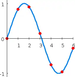 - Dans la version la plus simple (interpolation lagrangienne), on impose simplement que le polynôme passe par tous les points donnés. Étant donné un ensemble de n + 1 points, i.e. couples (xi , yi) (où les réels xi sont distincts 2 à 2, les yi pouvant être des réels, complexes ou éléments d'un espace vectoriel quelconque), on cherche à trouver un polynôme p (à coefficients de la même nature que les yi) de degré n au plus, qui vérifie :