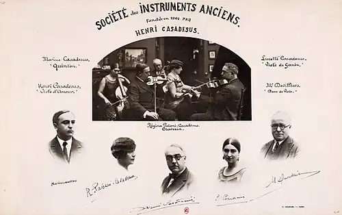 À la même époque, le ténor Yves Tinayre, « soliste des Concerts Colonne, Pasdeloup, Poulet, Société Bach[4] » fonde les Musiciens de la Vieille France (46, rue de la Santé, Paris) « qui interpréteront, dans leur texte original, les œuvres de Guillaume de Machaut, Dufay, Binchois, Roland de Lassus, Monteverde (sic) et Purcell, des auteurs du XVIIe et du XVIIIe siècle. Ils joueront du rebic (sic), des flûtes à bec, de la viole. Le premier concert a lieu le 24 novembre. Bonne chance ! » (La Liberté, 21 novembre 1927). Le Ménestrel précisait qu'il « cherche aussi à rénover les techniques instrumentales qui furent abandonnées. Voici, dès lors, à côté du clavecin, la flûte à bec, le hautbois d'amour, la musette, le rebec, les violes ; — et celles-ci seront jouées selon les traditions d'autrefois serrées entre les genoux et frôlées de l'archet que tiendra la main renversée. » (23 mars 1928).