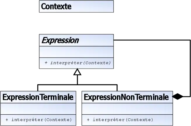 Le patron de conception Interpréteur peut être représenté par le diagramme de classes suivant :