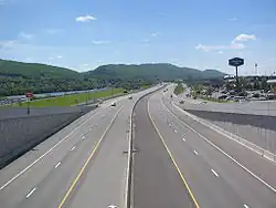 À la sortie 27A, la US 15 quitte le multiplex et l'I-180 continue vers l'est, toujours avec la US 220. C'est un peu avant de bifurquer vers le sud que la US 220 quitte le tracé de l'I-180.