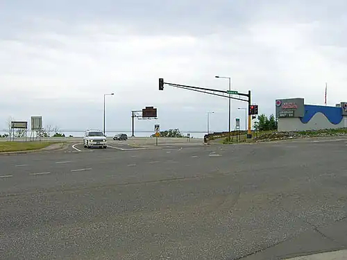 | Intersection à niveau; entrée direction nord; terminus sud; terminus sud du multiplex avec US 83 | ||||||