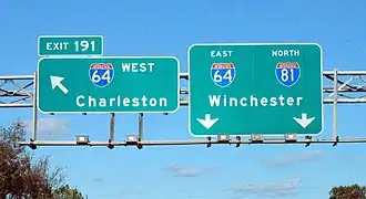 Entre les deux jonctions de l'I-64 avec l'I-77, les deux autoroutes forment un multiplex. Entre la dernière traversée de la rivière Kanawha à l'est de Charleston et la séparation du multiplex au sud de Beckley, les deux autoroutes sont payantes et font partie du West Virginia Turnpike.