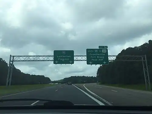 | Lumberton | 13,0 | 20,9 | 13AB | signée 13A et 13B; sortie 209 de l'I-74 | |