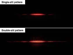 Dans l'expérience des fentes de Young, réalisée pour la première fois par Thomas Young et Augustin Fresnel en 1827, un faisceau de lumière est dirigé vers deux petites fentes rapprochées et produit des franges d'interférence sur un écran sous forme de bandes claires et obscures. Si l'une des fentes est fermée, on pourrait s'attendre à ce que l'intensité des franges dues à l'interférence soit diminuée de moitié. En réalité, c'est une figure beaucoup plus simple qui apparaît : une ligne de diffraction. Ainsi, la fermeture d'une fente donne une image plus simple en face de la fente ouverte. Un comportement identique peut être observé avec des vagues dans l'eau, l'expérience de Young était donc vue comme une démonstration de la nature ondulatoire de la lumière.