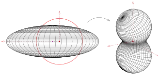 Un sphéroïde est une surface de révolution et contient un faisceau de cercles qui est projeté sur un faisceau de cercles (voir image). L'image inverse d'un sphéroïde est une surface de degré 4.