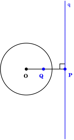- Si les cercles k et q sont orthogonaux, alors une droite passant par le centre O de k et coupant q, le fait en des points inverses par rapport à k.