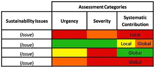 Il est utilisé pour identifier quels aspects d'un secteur économique déterminé du marché vont devenir un problème socio-environnemental à court, moyen ou long terme. Pour le sens commun, une question est «émergente» quand elle commence à être médiatisée. Au lieu de cela, ici, l'outil se fonde sur des principes et critères scientifiques de durabilité[6],[7] pour déterminer ce qui est émergent.