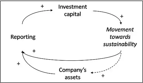 Une boucle de rétroaction positive, de type Gagnant-gagnant, peut alors être entretenue, encourageant théoriquement les investisseurs, banquiers, fonds de pension, etc. et actionnaires à soutenir l'entreprise, et celle-ci à évoluer vers plus de soutenabilité et de sécurité[3].