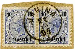 - ↑ Österreich 1850-1918, Spezialkatalog und Handbuch, von Dr. Ulrich FERCHENBAUER, Wien 1981, Post inder Levante (en allemand)